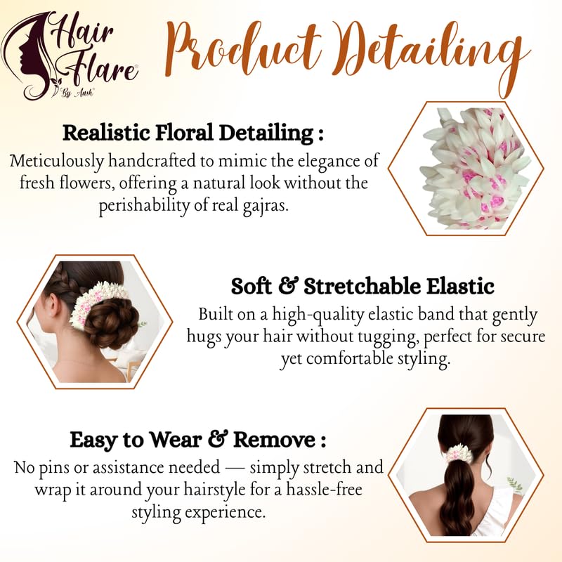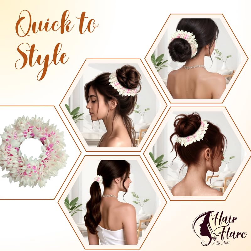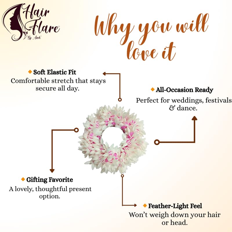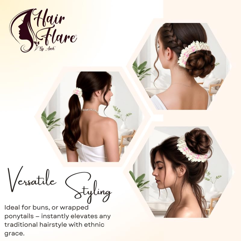 ✅ Stretchable & Comfortable Fit: Designed with an elastic base for easy application around any hair bun or juda—no need for pins or ties.