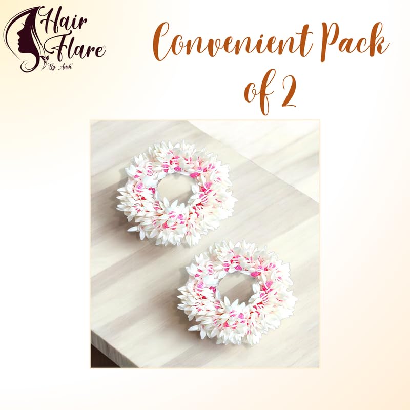 ✅ Realistic Artificial Floral Design: Looks just like fresh mogra/jasmine flowers, beautifully arranged with a hint of Pink Thread for added vibrance and charm.