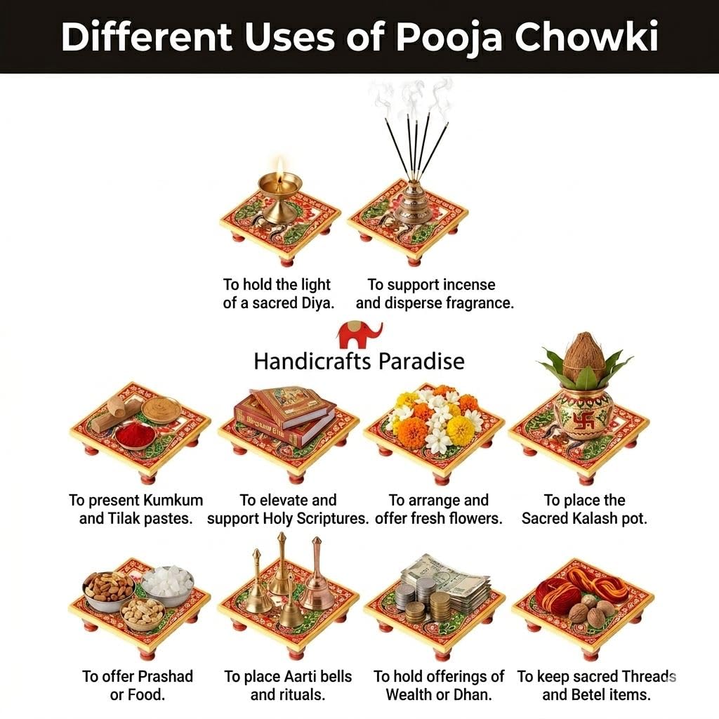 It can be used in the puja room to keep puja items, statues, and other auspicious things