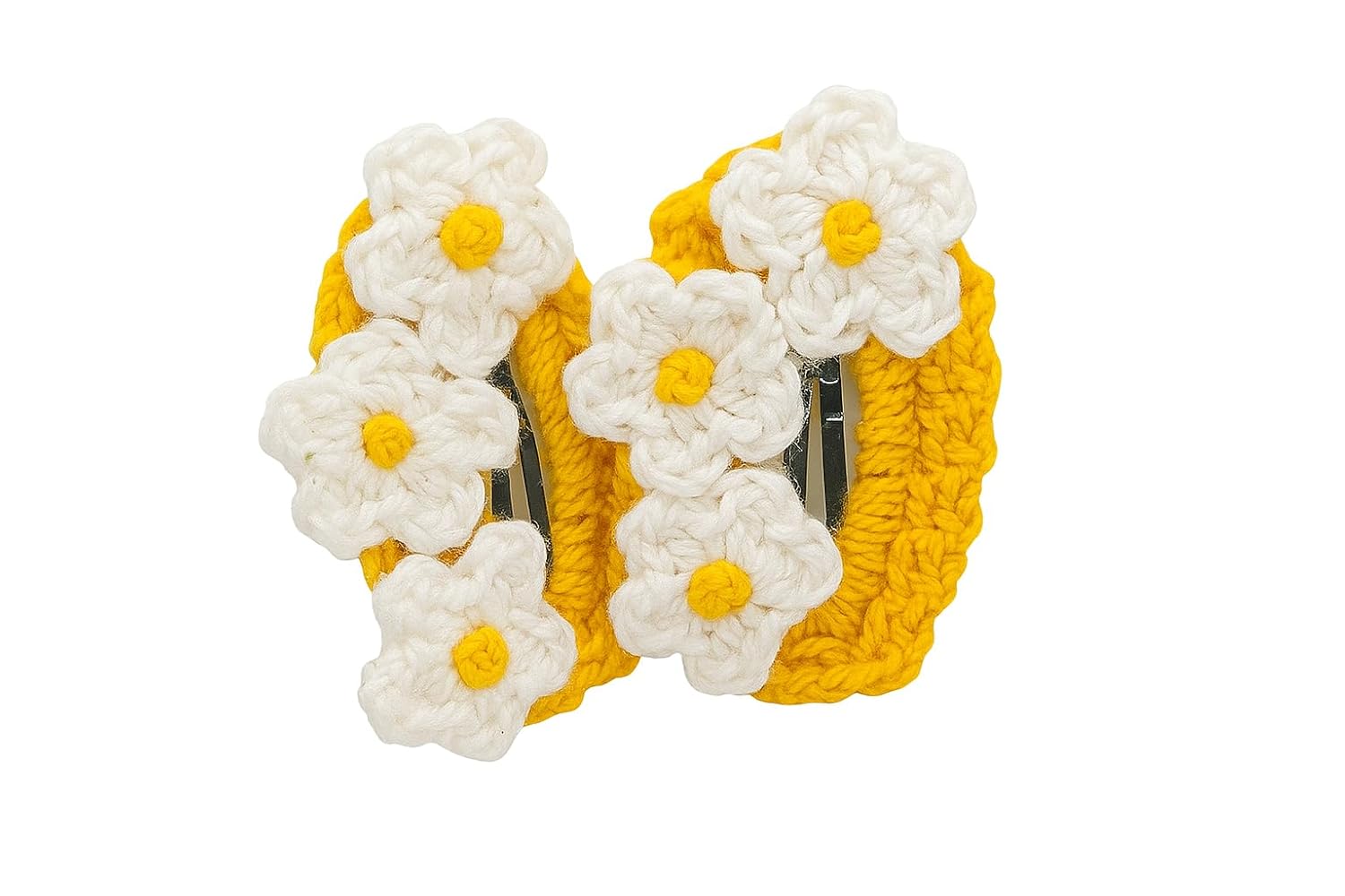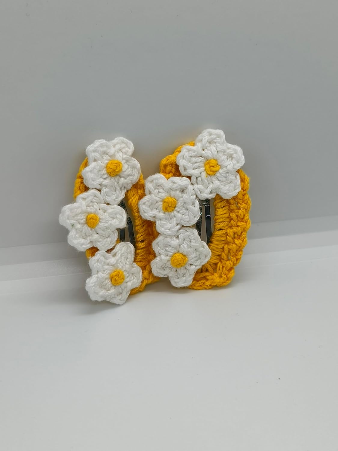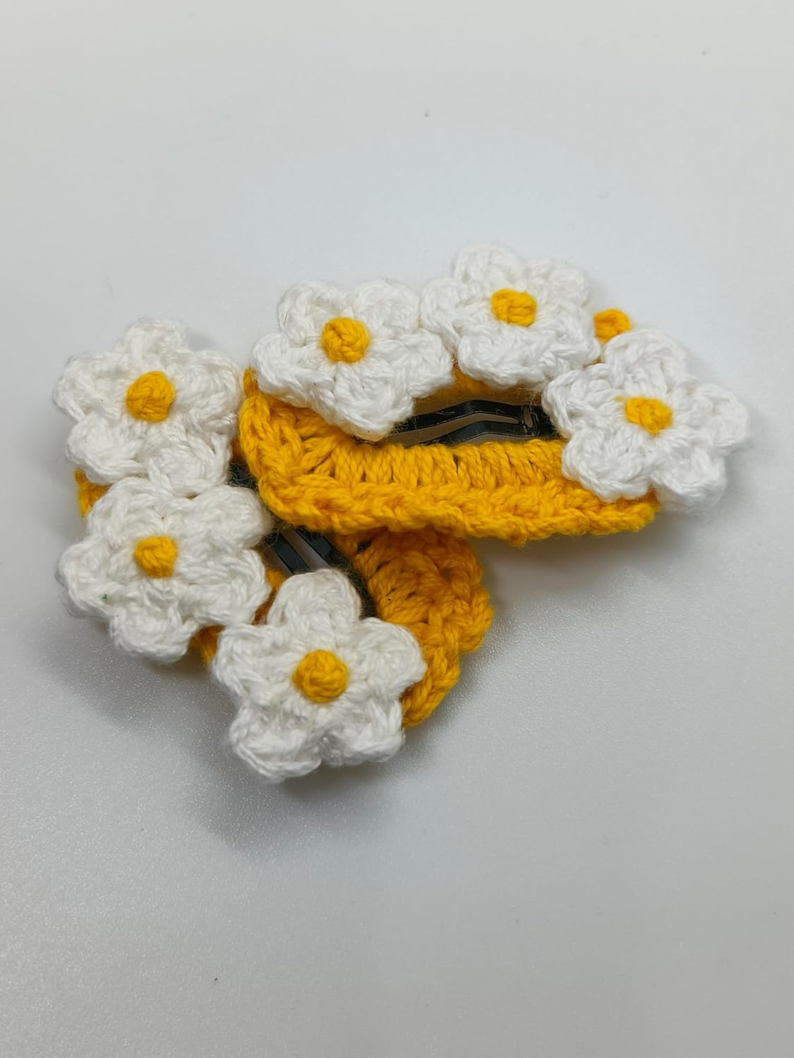 HANDCRAFTED DESIGN: Beautifully handmade crochet hair clips featuring delicate daisy flowers in yellow and white wool, perfect for adding a charming touch to any hairstyle