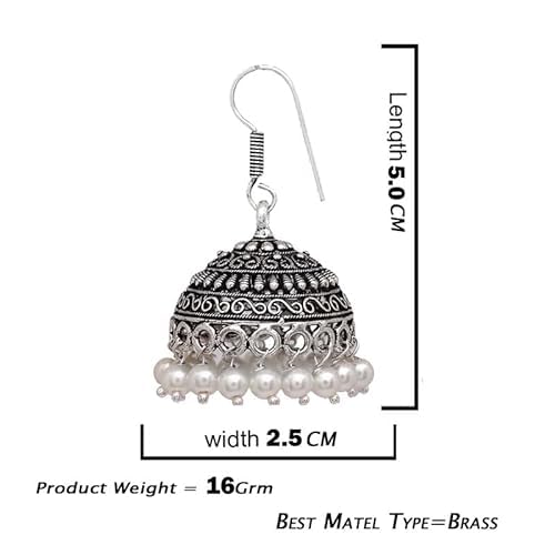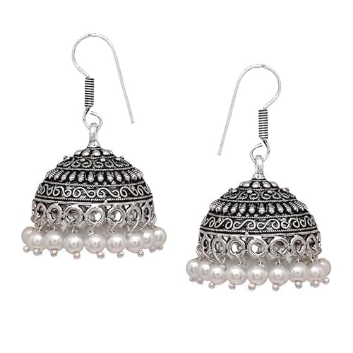 HANIYA Oxidised Silver Plated Hook Drop Jhumka Jhumki Earrings Jewelry for women