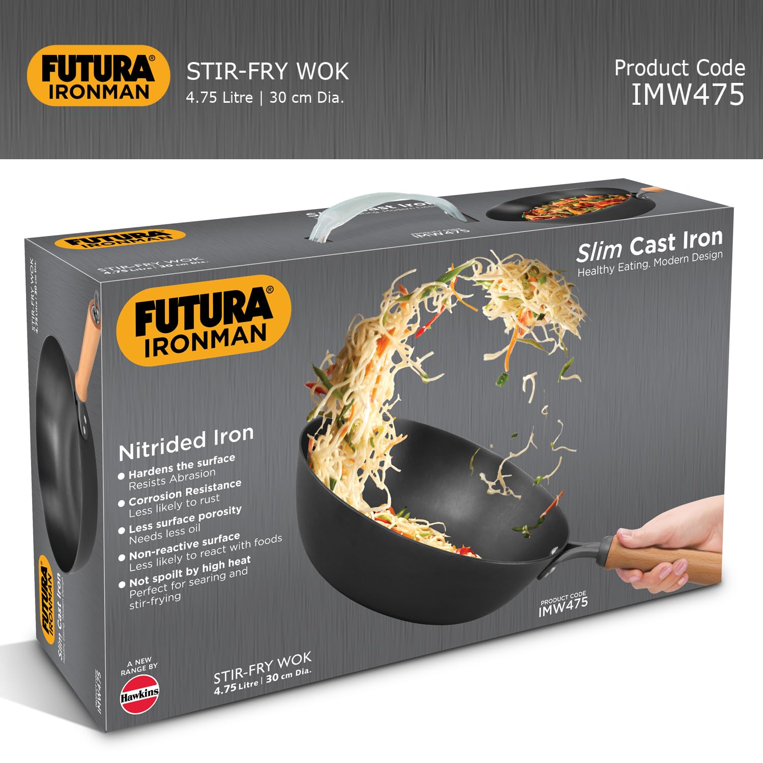 Hawkins 4.75 Litre Futura Slim Cast Iron Kadhai | Induction & Gas Compatible | Light Wok | Ideal for Stir-Frying & Tossing | Black (IMW475)|Induction and Gas Stove Compatible