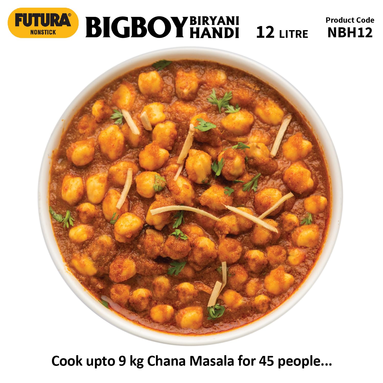 The cookware has a curved body design that makes it easy to handle and stir large amounts of food. This design likely provides better control and maneuverability when cooking. The cookware has a heavy-gauge 4.06 mm Hard Anodised body with a nonstick coating. This coating helps prevent food from sticking to the surface and makes the cookware easier to clean. Additionally, the hard-anodized body is known for its durability and longevity. The cookware features strong and sturdy lifting handles made of reinforced fiberglass. These handles are designed to stay cool to the touch, providing a comfortable and safe grip while lifting heavy loads of food. The cookware is equipped with a strong and sturdy riveted stainless steel bracket. This bracket likely adds structural support and stability to the cookware, ensuring its durability and longevity. The cookware has an ergonomic handle made of fiberglass. This handle is designed to stay cool and comfortable to hold, making it easier to maneuver and use the cookware. The cookware includes a unique lid specifically designed for cooking Dum Biryani. This lid has a special feature that holds water, making it cooler than the surrounding environment. As steam condenses under the lid, it falls back into the food, helping to retain moisture and enhance the flavor of the Biryani. Additionally, this design allows for cooking with less water, resulting in a more flavorful final dish. The cookware is described as ideal for large families, parties, hotels, dhabas (roadside eateries), and canteens. It is suitable for various dishes such as Biryani, Chana Masala, Dum Aloo, Dum Gosht, and many more. The cookware is designed to be easy to clean and maintain. The nonstick coating and hard-anodized body likely contribute to its no-hassle cleaning properties. Additionally, the cookware is said to stay looking new for years, suggesting that it retains its appearance and durability over time. Overall, this cookware appears to be a robust and versatile option for handling large loads of food, with features that promote easy cooking, enhanced flavors, and long-lasting performance.
