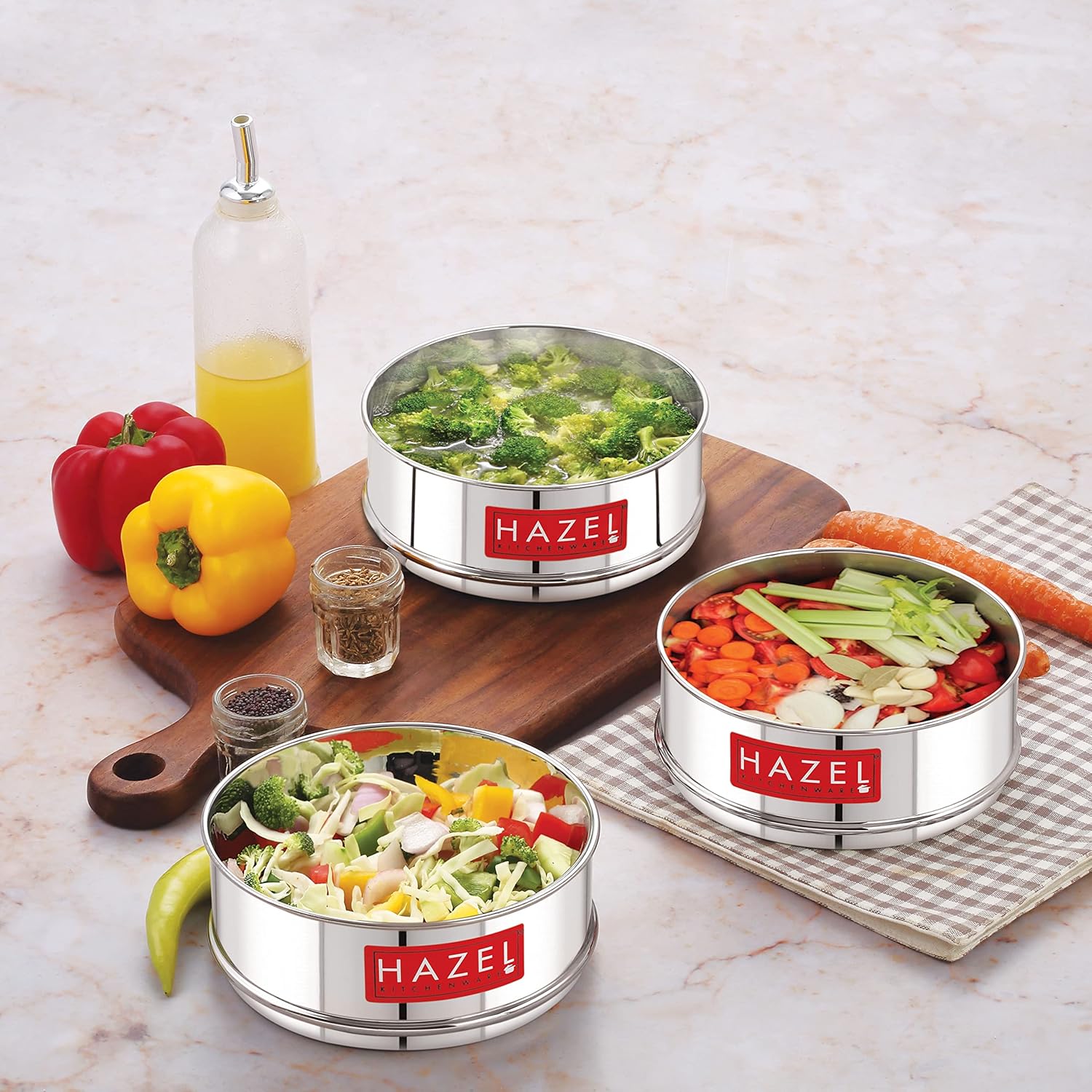 Hazel is one of the leading brands among household products. Every product at Hazel meets the highest quality standard and is in tune with the latest in market trends. The materials used to make a Hazel product are of top-notch food grade stainless steel, plastic, melamine, ceramic among others. The wide range of Hazel’s kitchenware include Containers, Bottles, Baskets, Jugs, Plates, Bowls, Trays, Knives, Spoons, Topes, Palis, Palatis, Pans, Pots, Cookers, Lunchboxes, Kitchen Racks, Cake Moulds, Dustbins, TriPly Cookware, Buckets, Water Tankis, Dinner Sets etc.