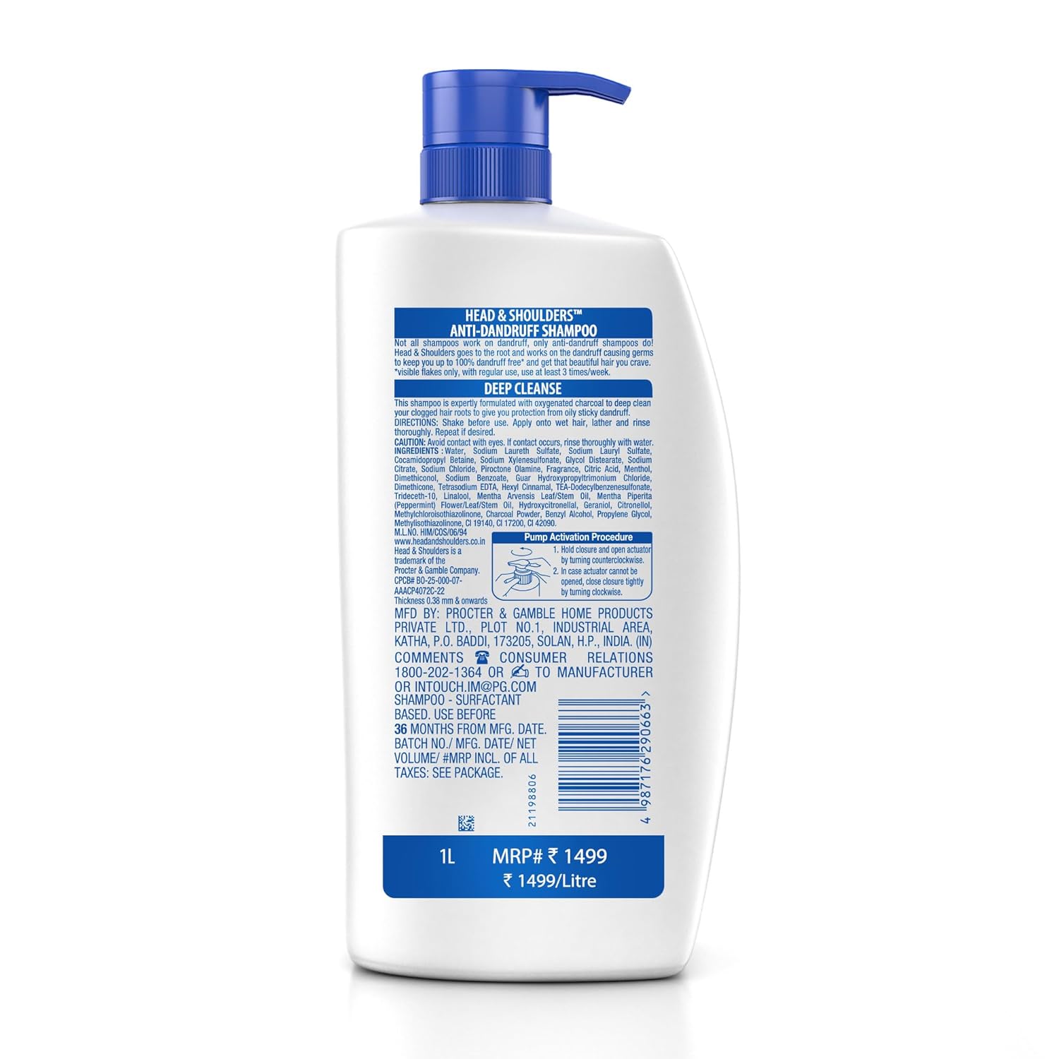 Head & Shoulders Deep Cleanse Anti Dandruff Shampoo with Oxygenated Charcoal, Fights Oily & Sticky Dandruff, Upto 100% Dandruff Protection, 1L