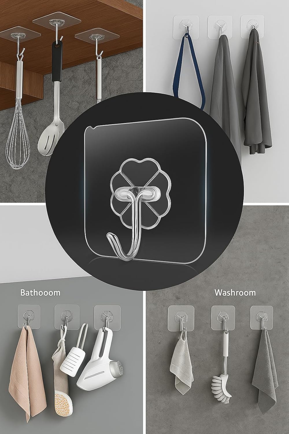 Clean Surface: Wipe the area with a dry cloth.Peel & Stick: Remove the adhesive cover and press firmly.Wait & Use: Allow 12 hours before hanging items.