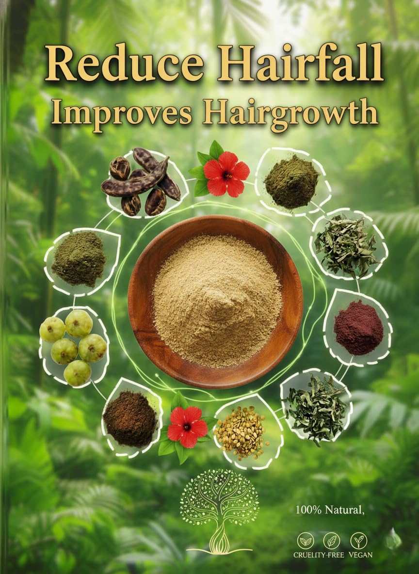 Gentle Cleansing: The powder gently cleanses the hair and scalp without stripping away natural oils, helping to maintain their natural balance.Strengthens Hair and Prevents Hairfall: The natural ingredients help strengthen hair follicles and reduce hair fall.Promotes Hair Growth: The herbs in the powder help stimulate blood circulation in the scalp and promote healthy hair growth.Reduces Dandruff and Scalp Issues: Its antifungal and antibacterial properties can help prevent dandruff and other scalp-related issues.Adds Shine and Softness: Regular use can leave hair soft, smooth, and more manageable, adding a natural shine.Chemical-Free: The product is free from harsh chemicals, sulfates, and parabens, making it a safe choice for all hair types.