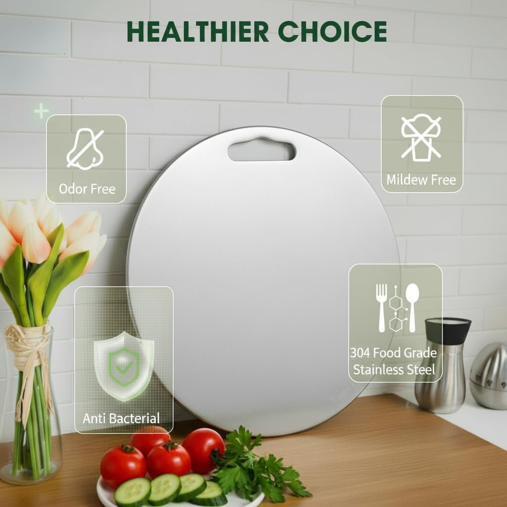Food-grade steel: Made from premium stainless steel, this chopping board is food-grade and safe for cutting all types of ingredients, ensuring the highest standards of hygiene in your kitchen.