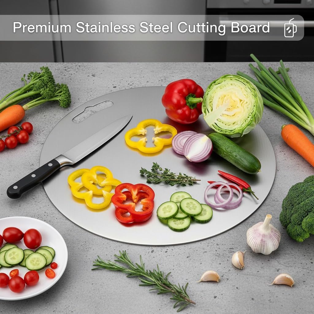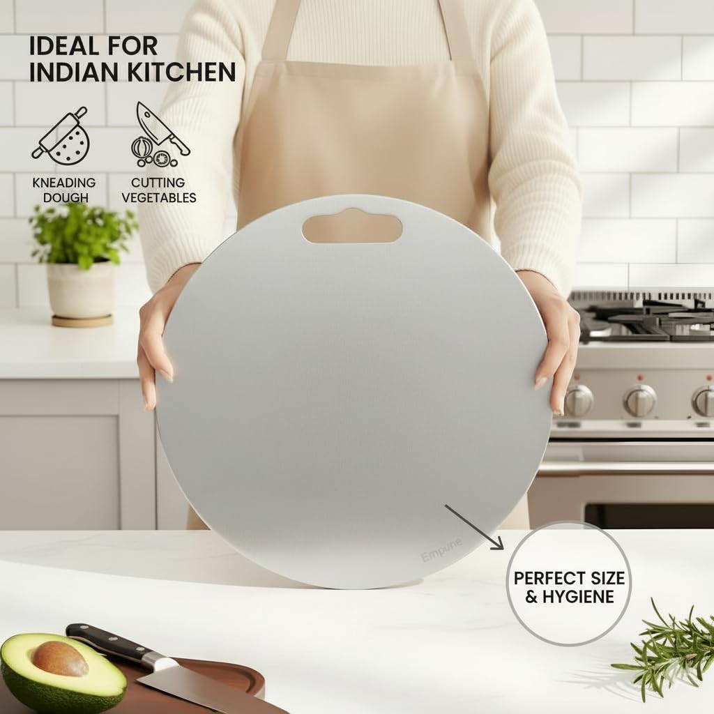 Round Design: Circular shape provides a spacious cutting surface and allows for efficient movement while preparing meals. Unbreakable and Sturdy: Built to withstand heavy-duty usage without breaking or deteriorating.