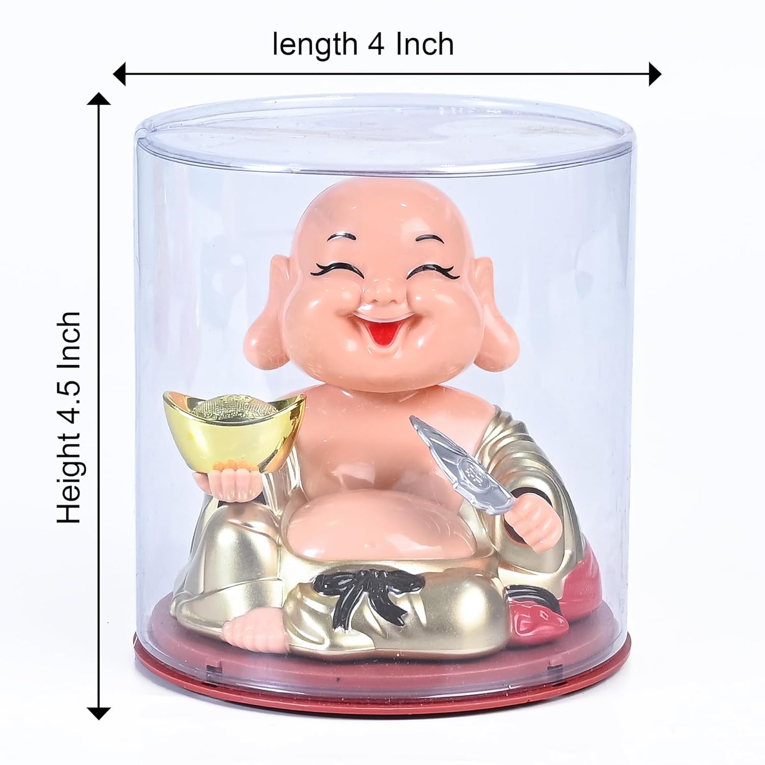 🌞 Solar-Powered Laughing Buddha with Waving Fan & Ingot: This solar Buddha features a solar-powered mechanism that makes the Laughing Buddha’s head and fan move gently, symbolizing the constant flow of blessings and positive energy. Perfect for feng shui, it promotes health, wealth, and prosperity. Ideal as a car dashboard laughing Buddha.