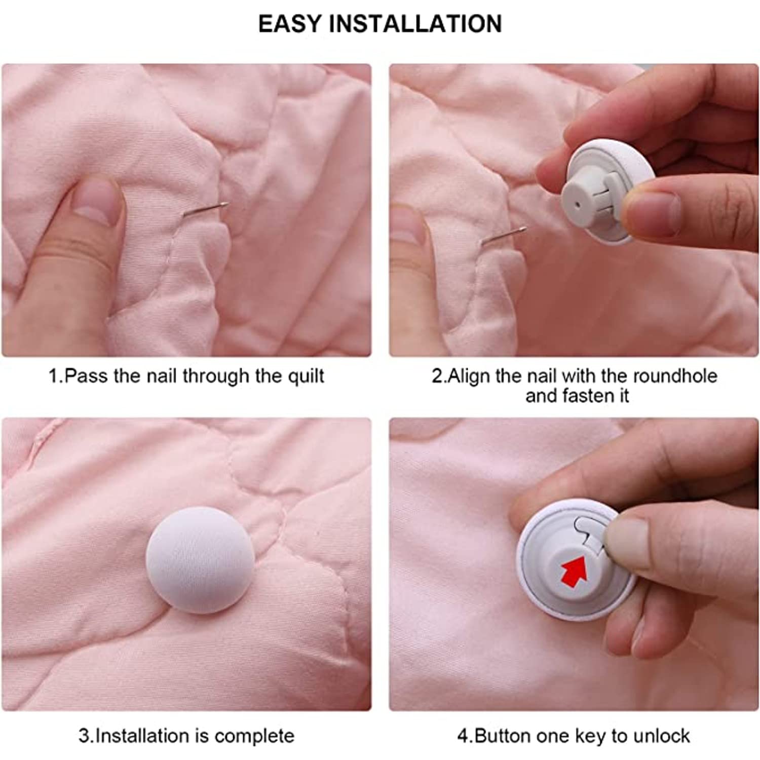 Simple to Use:- You Only Need to Pass the Needle Through the Quilt and Put the Nail in the Round Hole on the Other End to Fix It. When You Want to Remove It, You Can Press the Button to Unlock It Directly, Which Is Very Easy to Remove.