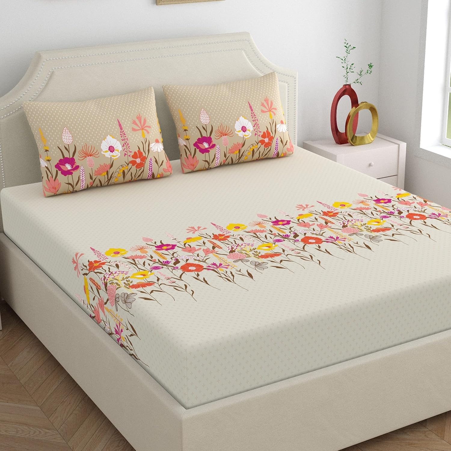 SUITED TO MOST DECORS: Our extensive range of cotton bedsheets for double beds caters to diverse style preferences. Combining durability with comfort, these bedsheets enhance bedroom aesthetics. Whether you prefer natural light ambiance or a more personalised style, our cotton bedsheet elevates your bed and reflects your home’s unique charm.