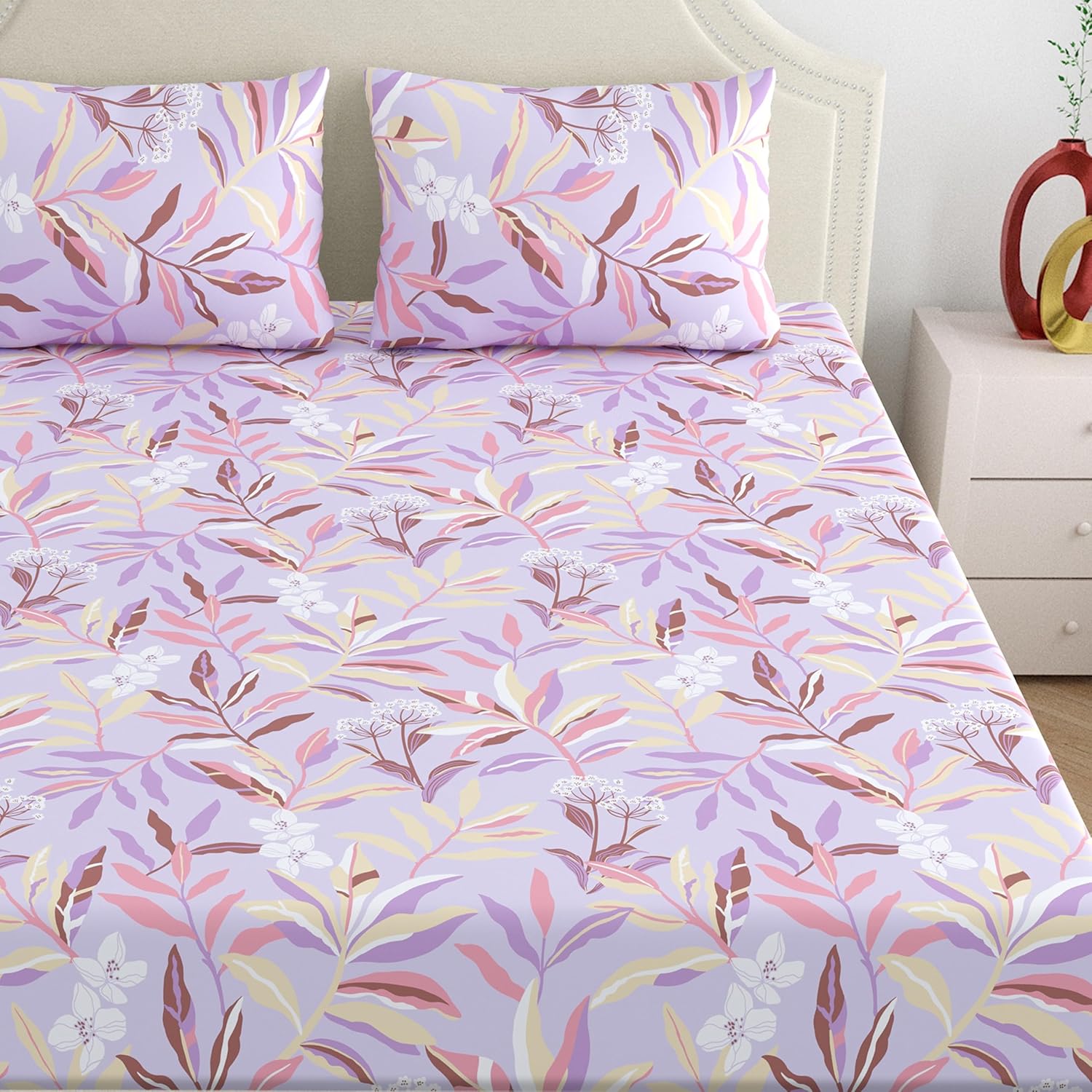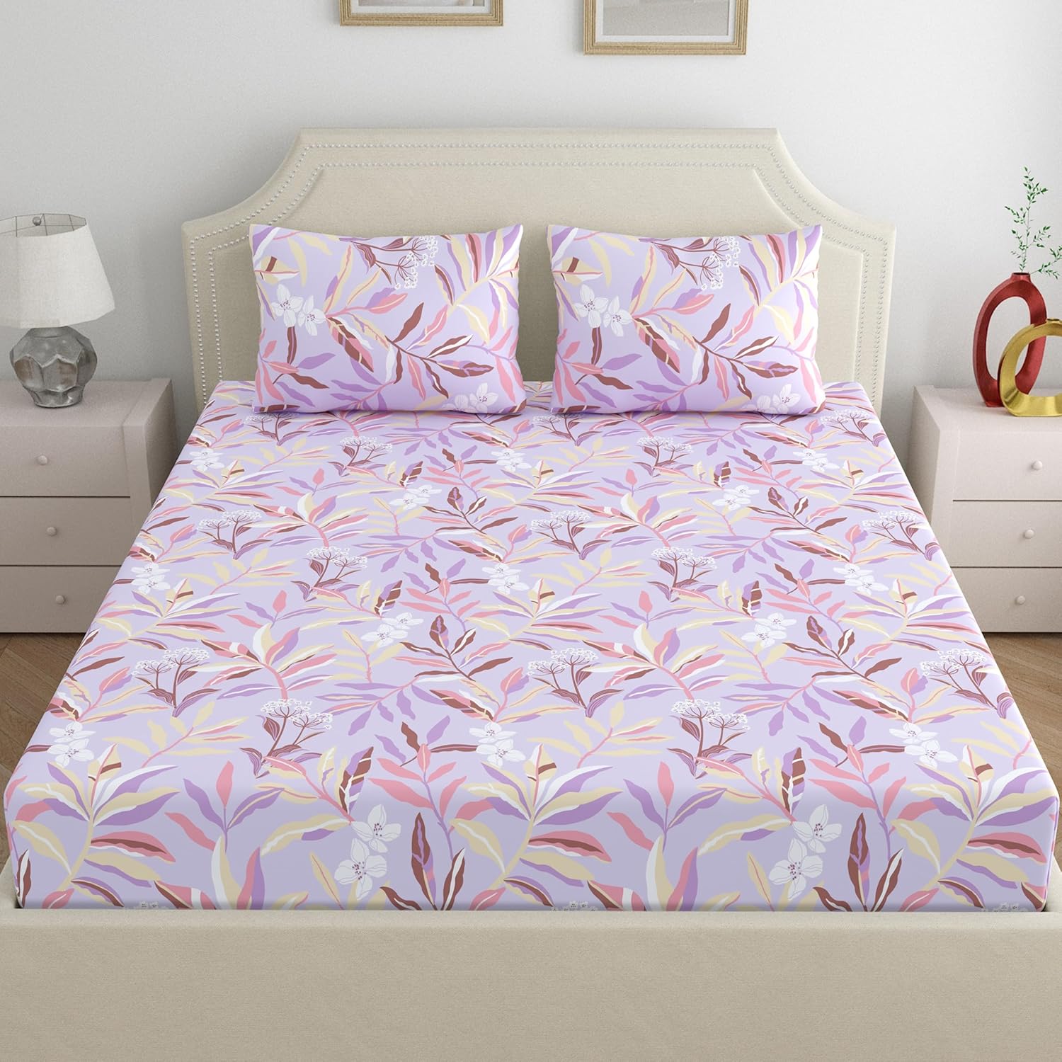 Home Ecstasy 100% Cotton King Bedsheet with 2 Pillow Covers – (Size 108 x 108 inches, 140 TC, Colour – Purple: Dreamy Periwinkle)
