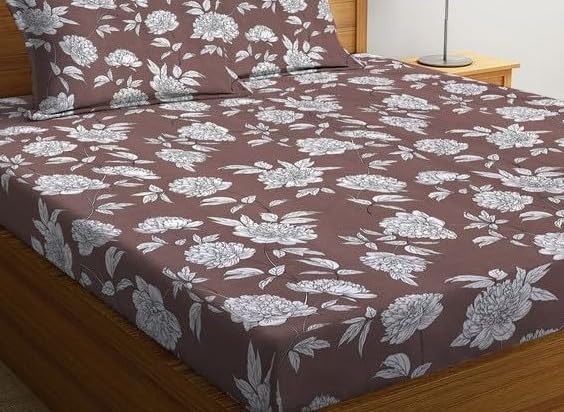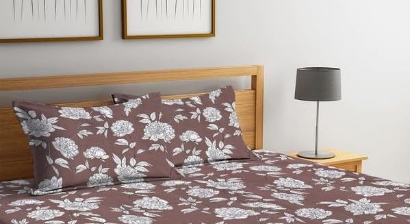 Home Premium Cotton Flat Double Bedsheets with 2 Pillow Covers | Double Bed Breathable | Wrinklefree | Ultrasoft 210 tc Supersoft | 90 x 90 Inches|Print Floral, Light Brown