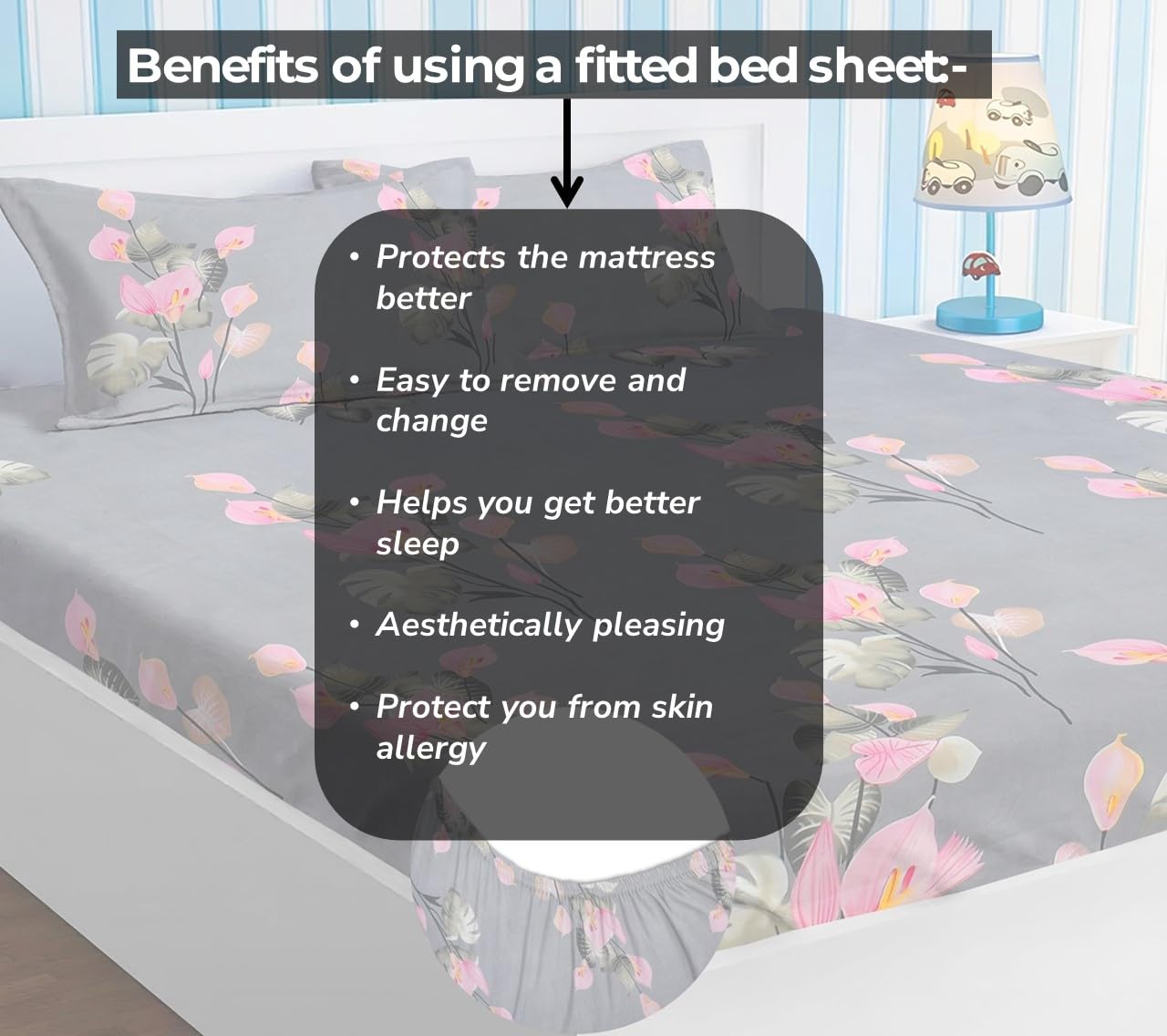 Pack Content: 1 Fitted Bedsheet 2 Pillow Covers