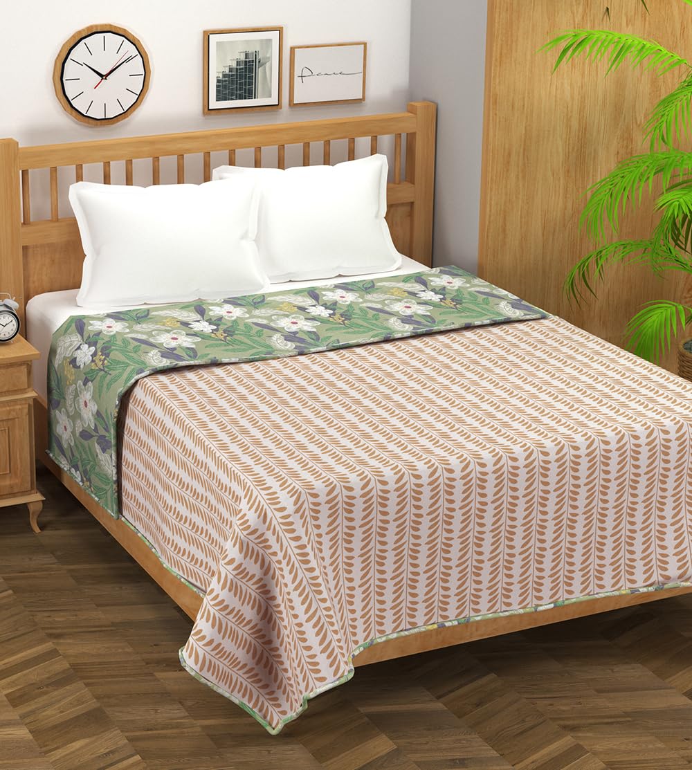 HOMEKART Super Soft Cotton Printed Dohar |AC Blanket| Quilt/Duvet for Single Bed (60 x 86 inches) |Lightweight, Durable & Skin Friendly – 250 GSM |Single- 150×220 cms, Green & Beiege