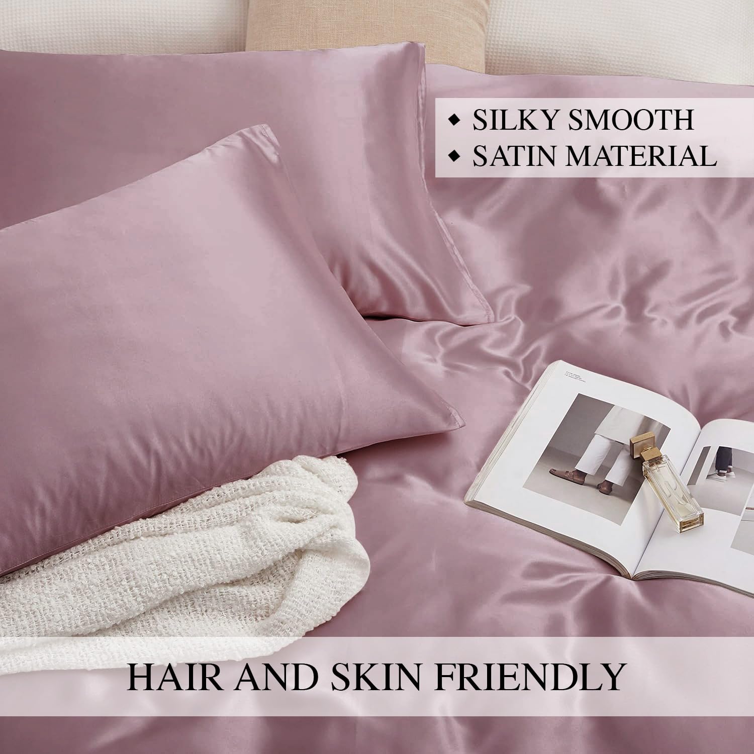 HAIR & SKIN BENEFITS: The smooth satin fabric of this satin bedsheets for king size bed helps reduce friction, preventing hair breakage and minimizing skin irritation. Its gentle texture keeps your hair frizz-free and your skin hydrated, making it ideal for maintaining healthy, glowing skin and silky, manageable hair while you sleep.