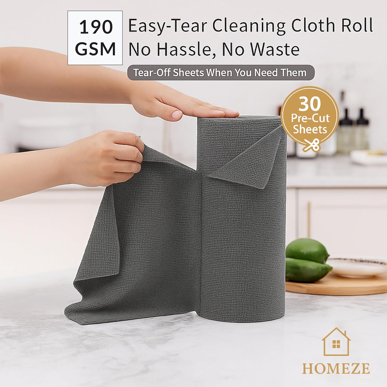 [QUICK TEAR-AWAY DESIGN] – Convenient roll format with 30 pre-cut sheets (25 cm each) lets you grab a fresh cloth instantly, perfect for home, kitchen, garage, car, and more.