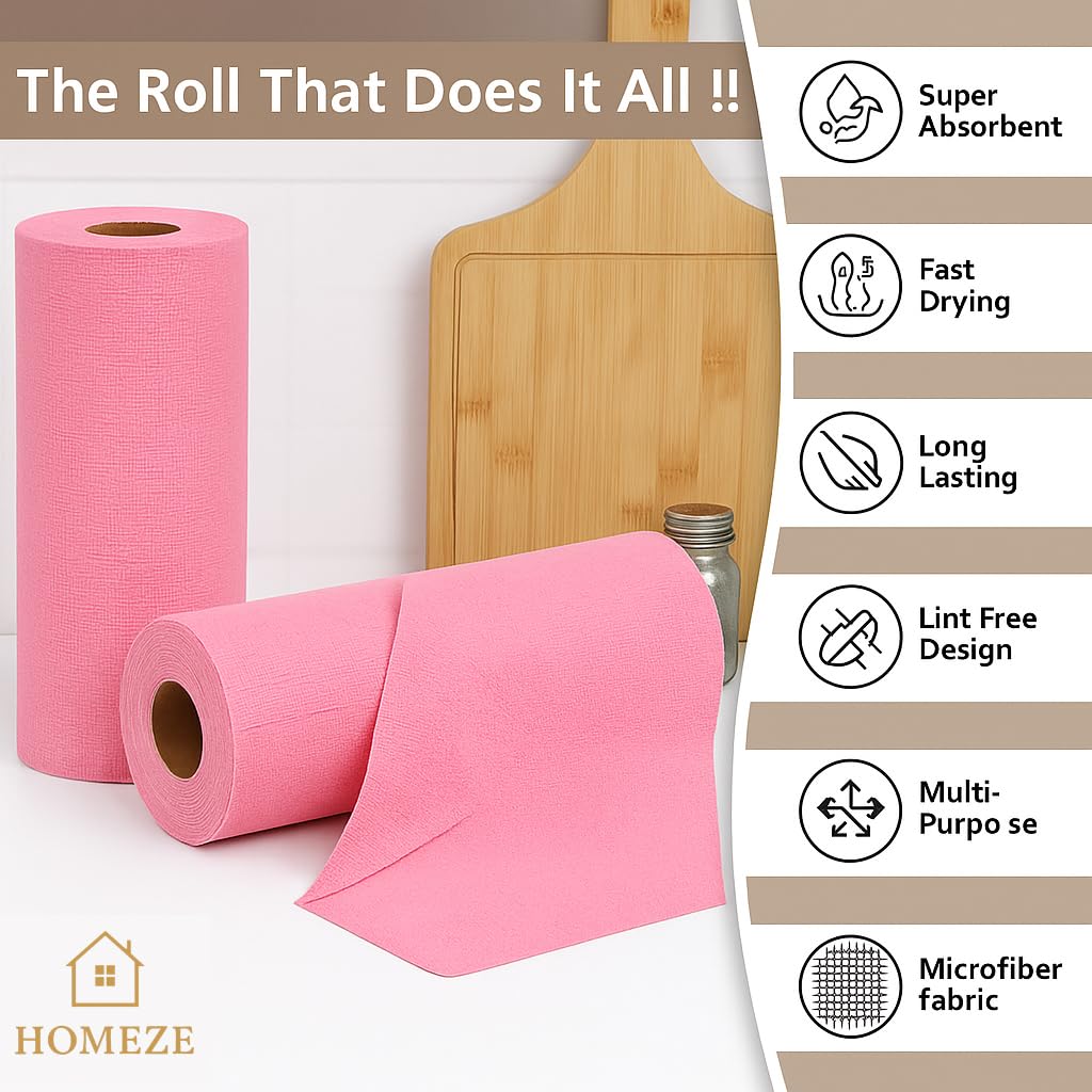 HOMEZE Microfiber Cleaning Cloth Roll – 30 Pre-Cut Sheets, 25 cm Each, 220 GSM, Tear-Away & Reusable Towels for Kitchen, Home, Car, and Multipurpose Cleaning