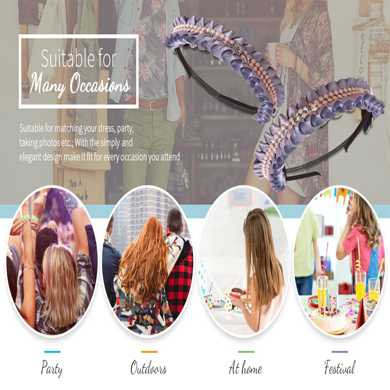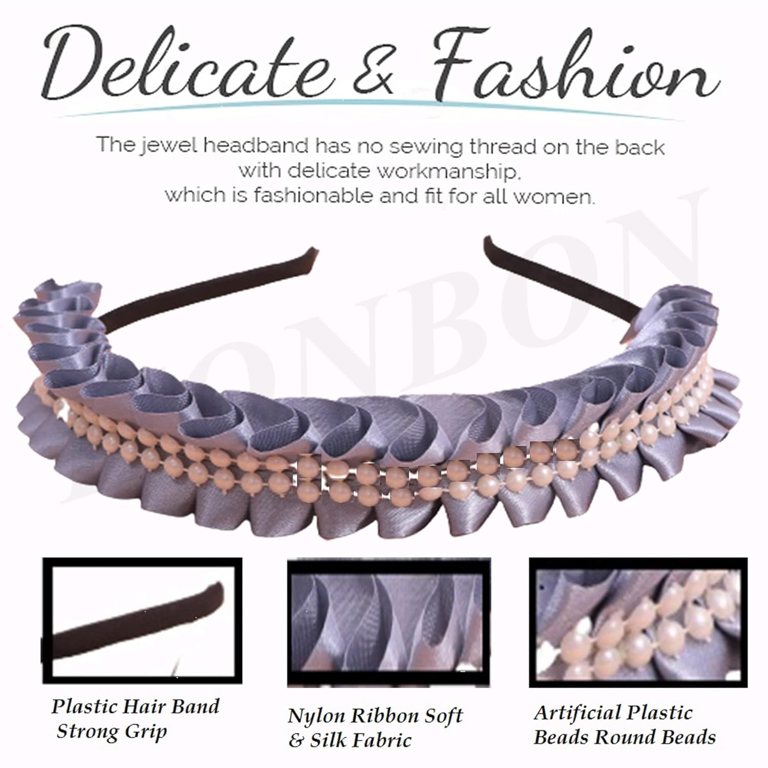 Generic Name : Honbon Hairband Set Ribbon Headband Artificial Beads Frill Design Grey Color Cutwork Hair Decoration Fancy Hairband Sweet Hairband Luxuary Beautiful look Party Useful for Girls & Women 1pcs