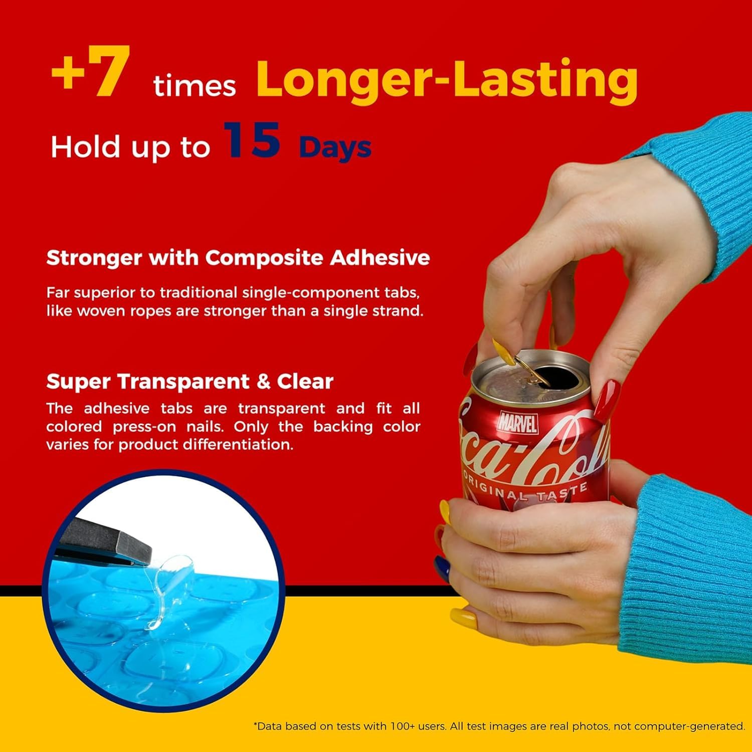 Customers find the nail glue tabs hold up nicely for everyday use and are perfect for press-on nails. Moreover, the appearance matches the product images, and customers consider it worth the money. However, the adhesive quality receives mixed feedback, with several customers reporting very bad adhesion. Additionally, the durability and functionality also get mixed reviews.