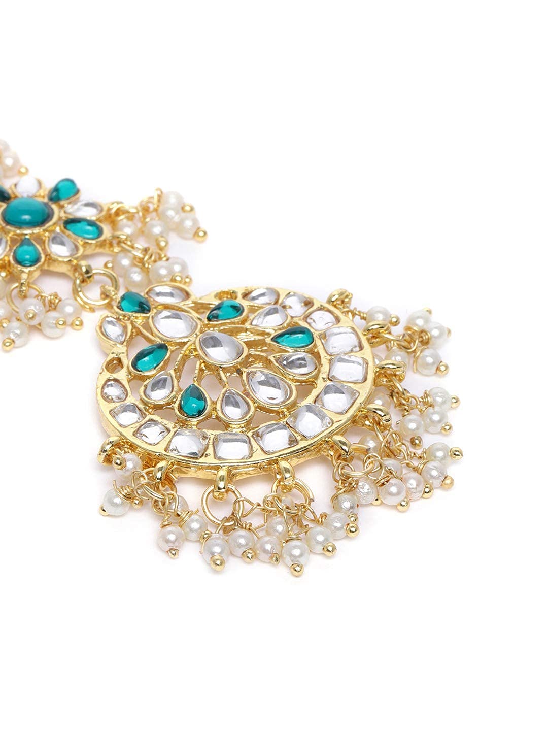 I Jewels 18K Gold Plated Traditional Pearl & Kundan Studded Maang Tikka for Women/Girls (T2872)