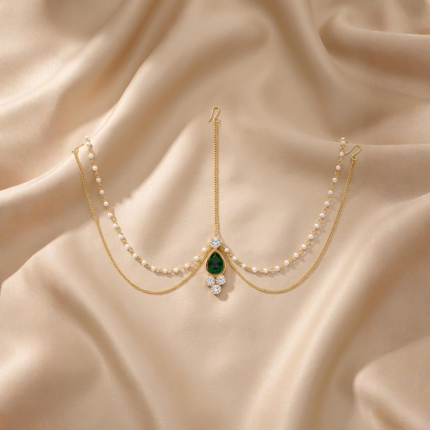I Jewels 18K Gold Plated Traditional Pearl Layer with Stone Studded Mathapatti for Women (T1083)