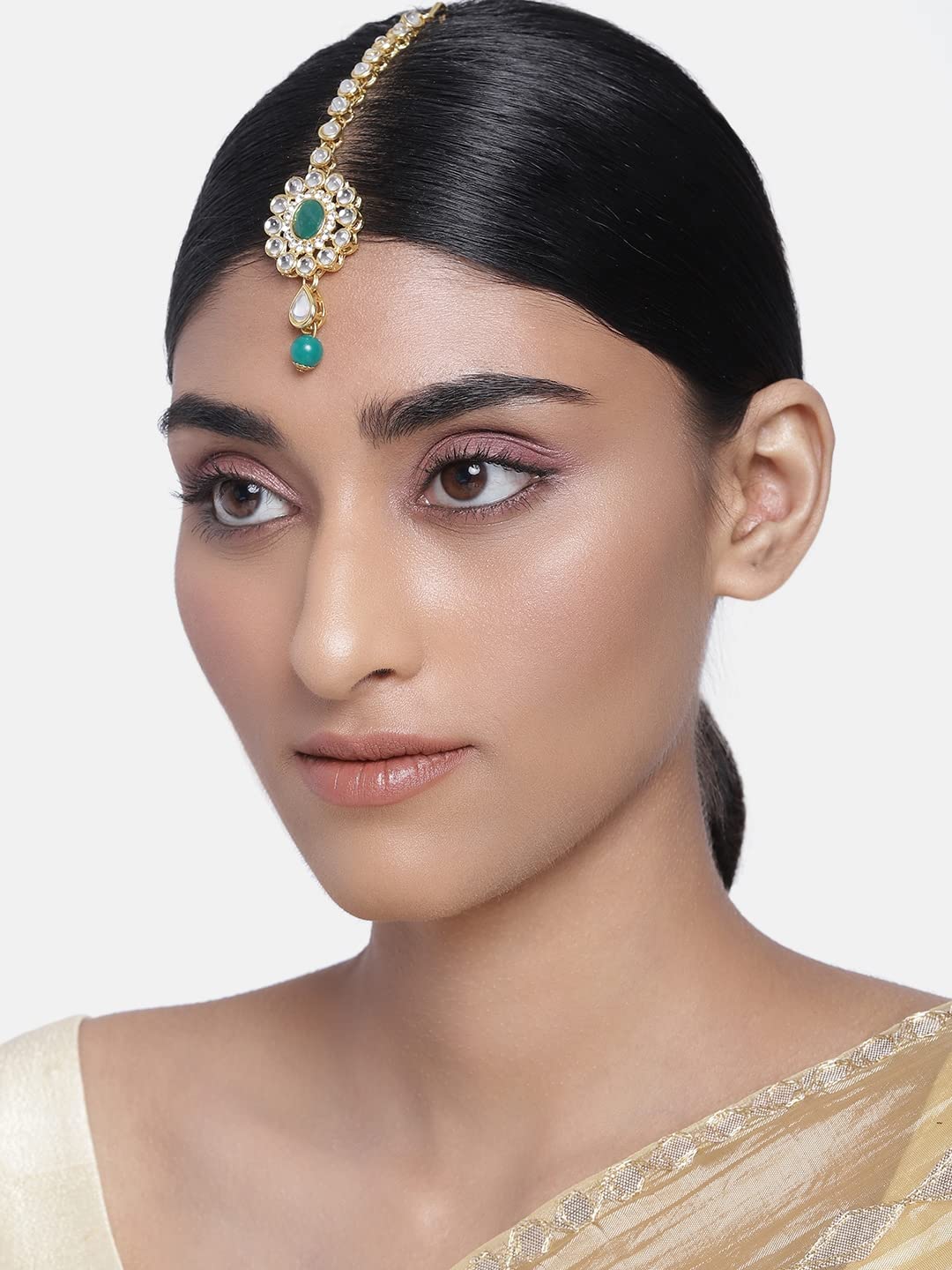 I Jewels Gold Plated Kundan & Stone Studded Maang Tikka for Women