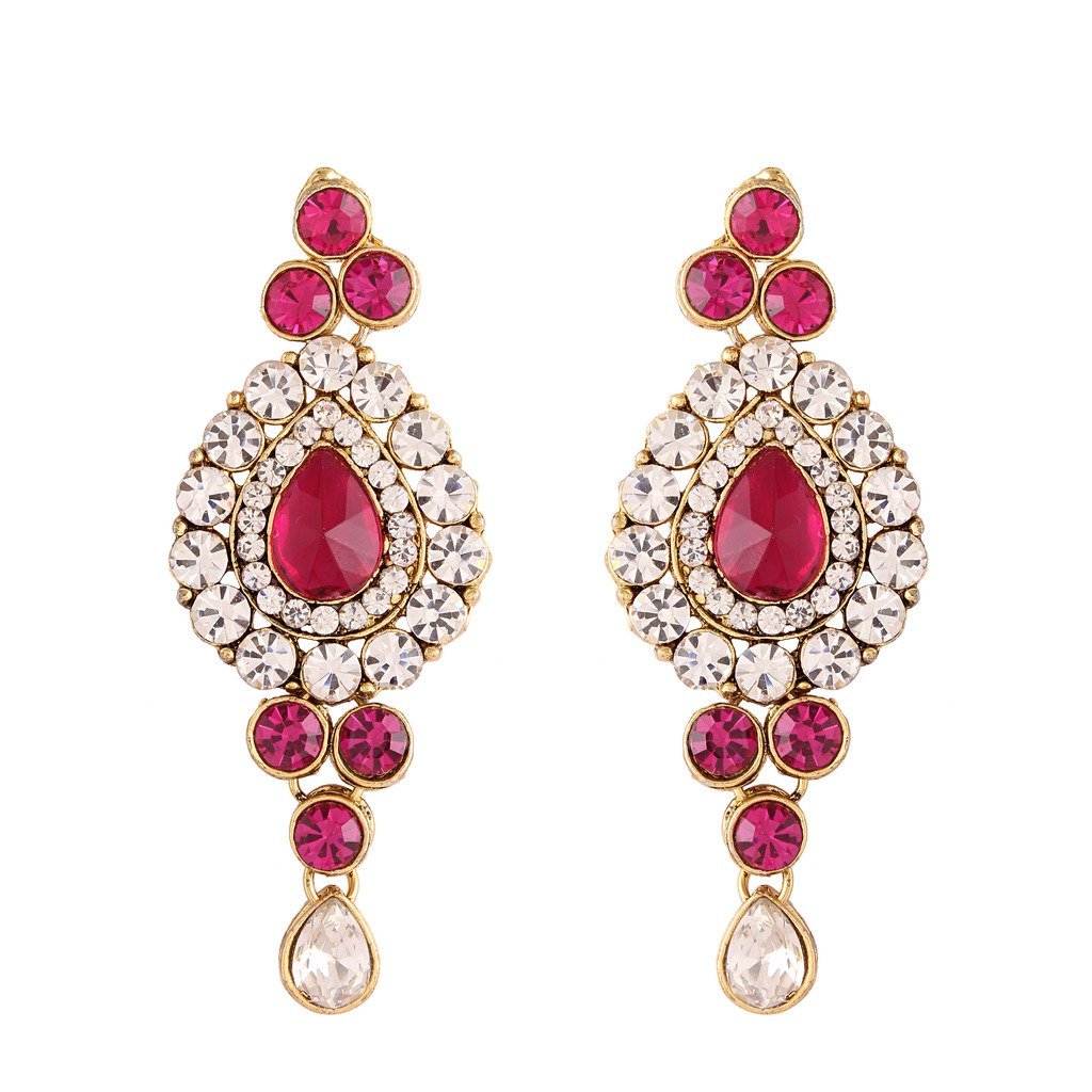 I Jewels Traditional Gold Plated Jewellery Set with Maang Tikka using Austrian Diamonds for Women IJ250Q (Rani/Dark Pink)