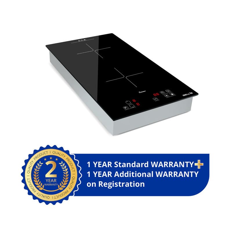 Electric induction hob with 3500W and 2 heating zones for fast and energy-efficient cooking.