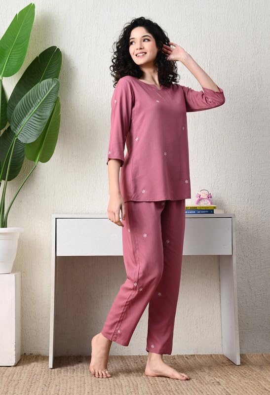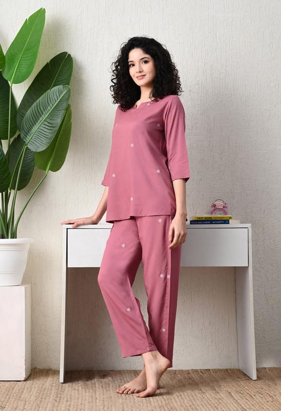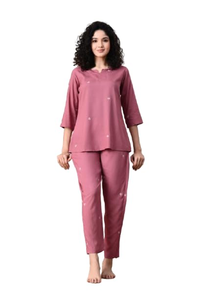 Customers find the pajama set to be of good quality and appreciate the fabric material, with one customer noting it’s soft. The set is comfortable to wear. The thickness of the fabric receives mixed feedback, with several customers describing it as thin.