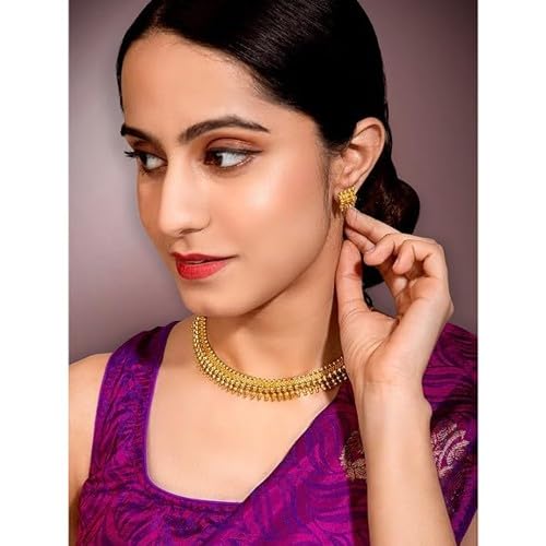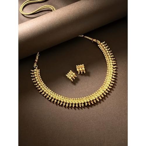 IMMIJWELL Gold Plated Elegant Indian Traditional Choker Necklace with Earring Jewellery Set for Women Girls