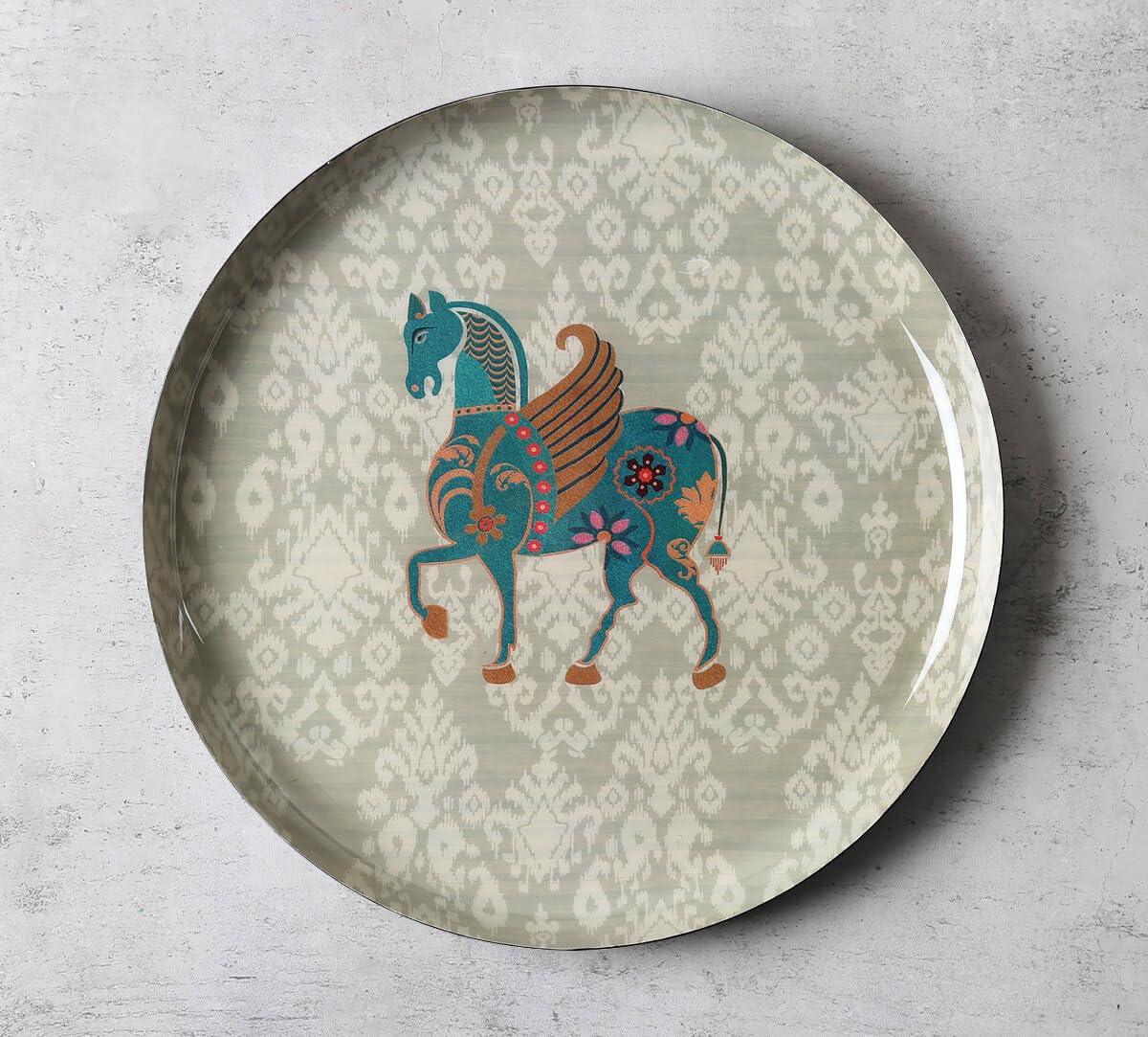 India Circus by Krsnaa Mehta Pegasus of Greece Wall Decor Plates Set of 5 | Wall Arts For Home Decor | Decorative Iron Plate for Living Room, Bedroom, Office, Cafe, Restaurant (Size 12, 10, 8 inch)