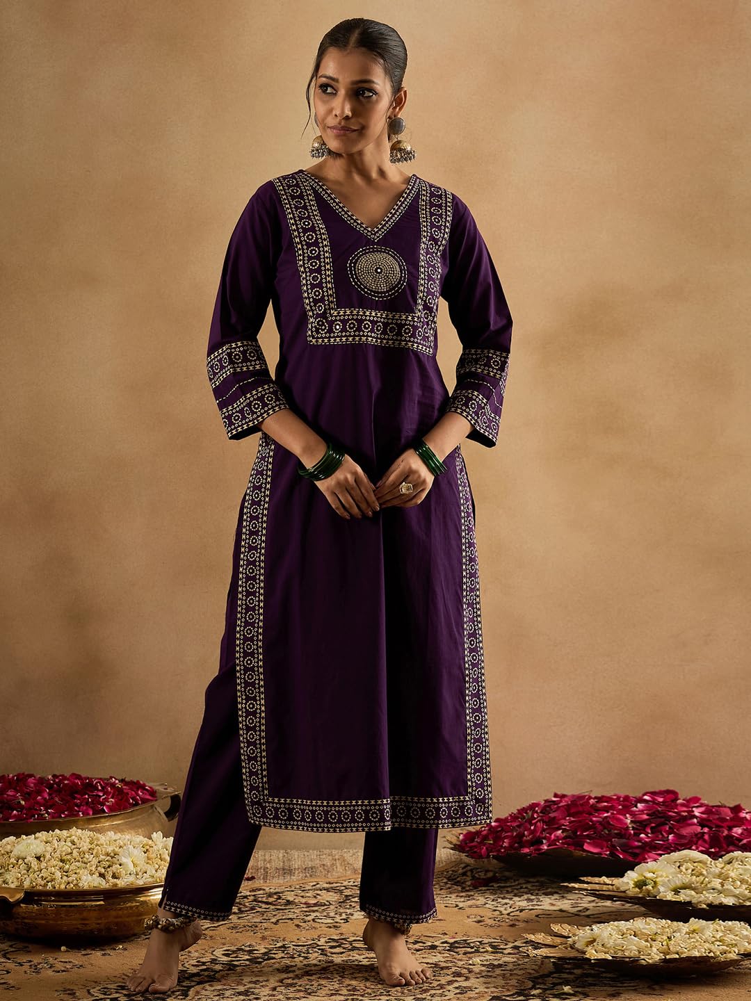 INDO ERA Women Pure Cotton Kurta Set with Dupatta | Festive Suit Set, 10156
