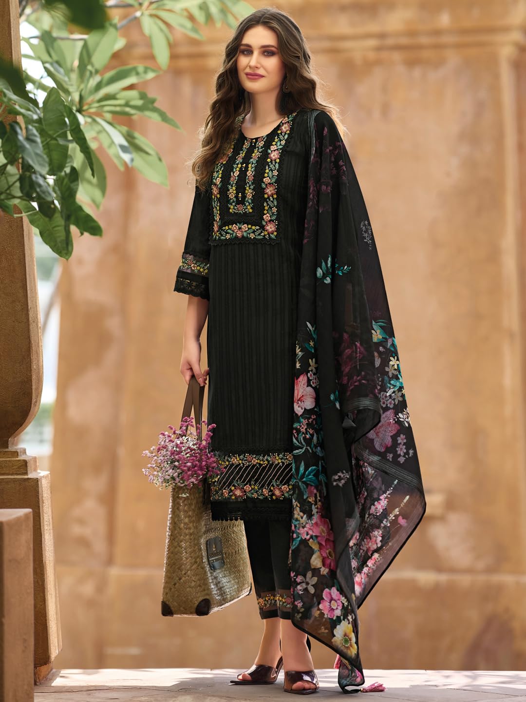 INDO ERA Women’s Straight Linen Floral Embroidered Kurta Pant with Dupatta Set (IEOUT9910)