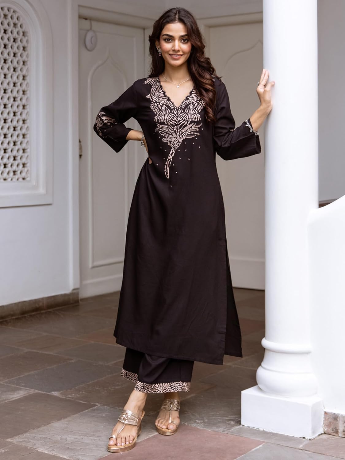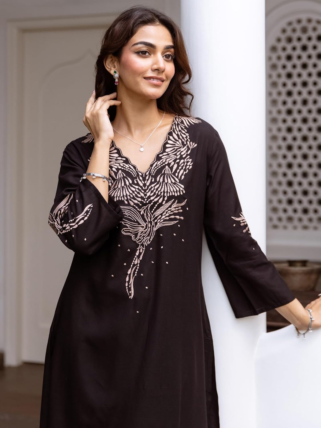 INDO ERA Womens Viscose Rayon Printed Kurta Pant Set