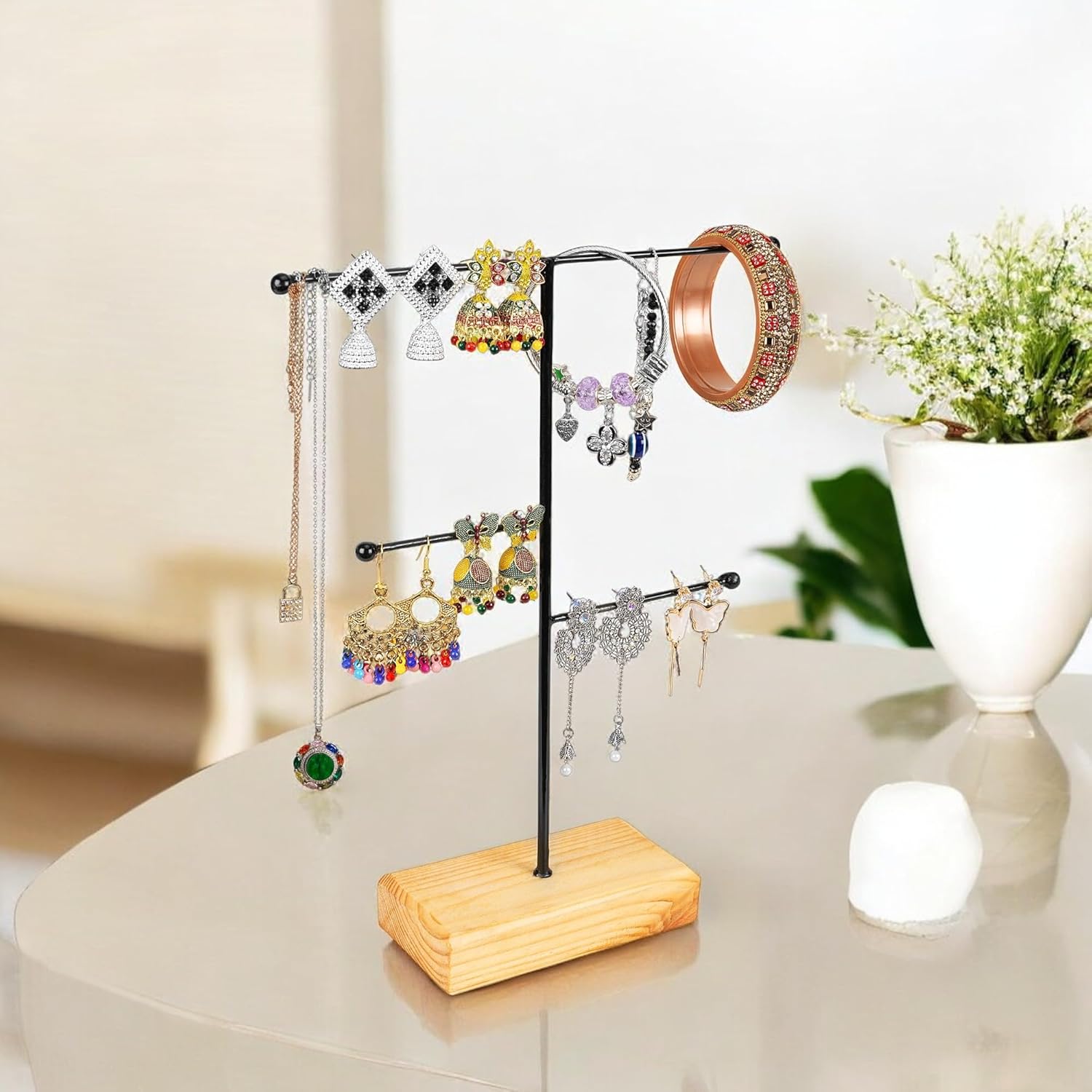 Ideal for displaying and organizing earrings, bracelets, and other small accessories, this stand helps you keep your favorite pieces easily accessible and tangle-free.