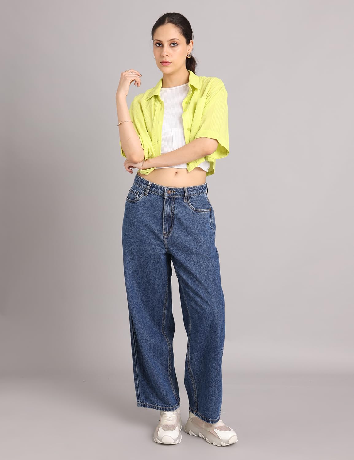 INKD Women’s Baggy Fit Jeans – Mid-Rise | 100% Cotton | Jeans for Women