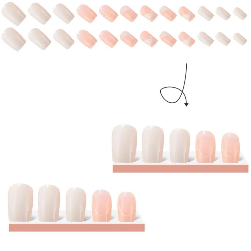 How to apply 1.Clean nails. 2.Select the correct size nails.If needed,file sides fou best fit. 3.Paste the right jelly glue on your fingers,Stick fake nails. Avoid contact with water within 1 hour after completion. How to remove 1.Do not force or pull nails off. 2.Soak nail in warm water for 10-15minutes. 3.Gently peel off at the edge.