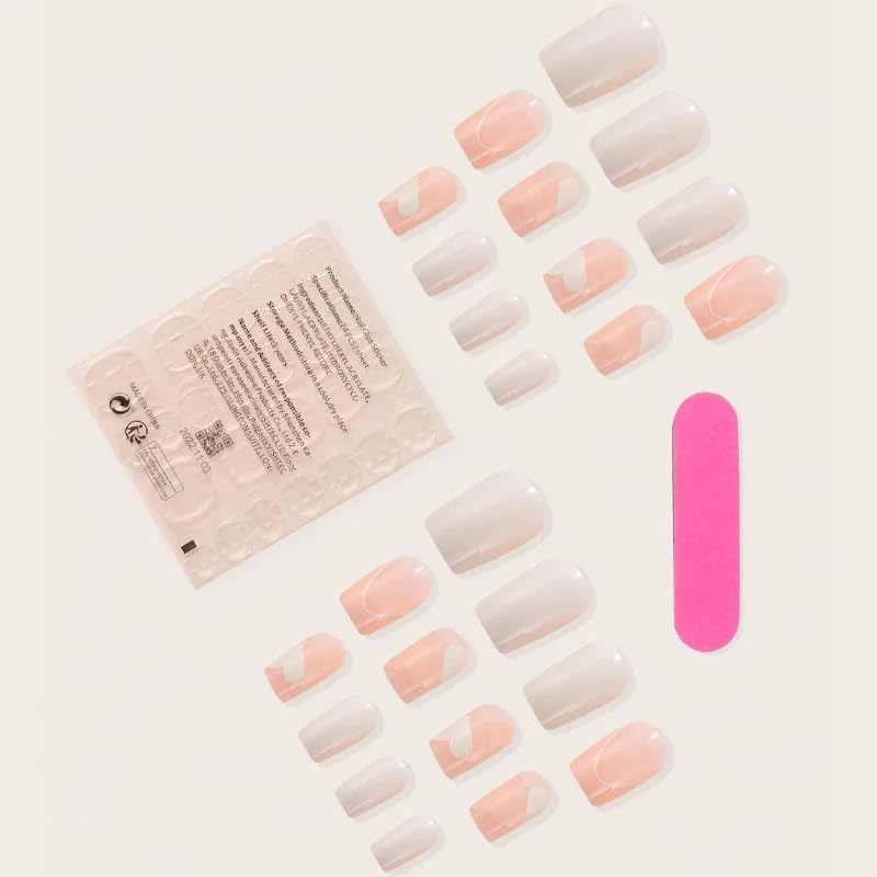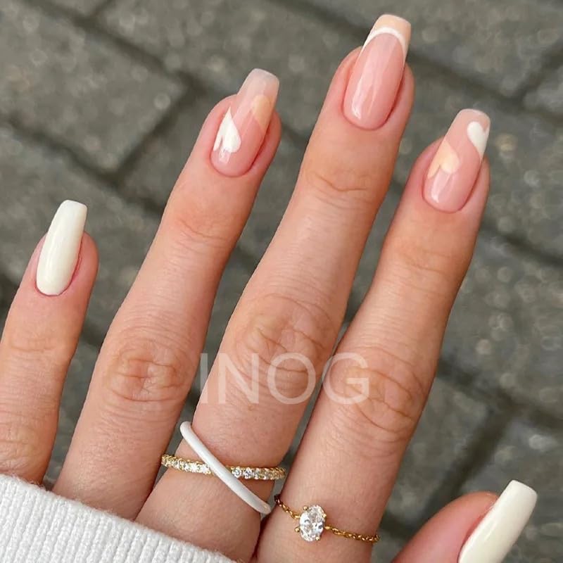 INOG Press On Nails- Nails for Women Press on Nails Short, Glue On Nails Fake Nails Manicure Set with Glue Tab Sticker 24 PCS/Set (French Nude Heart)