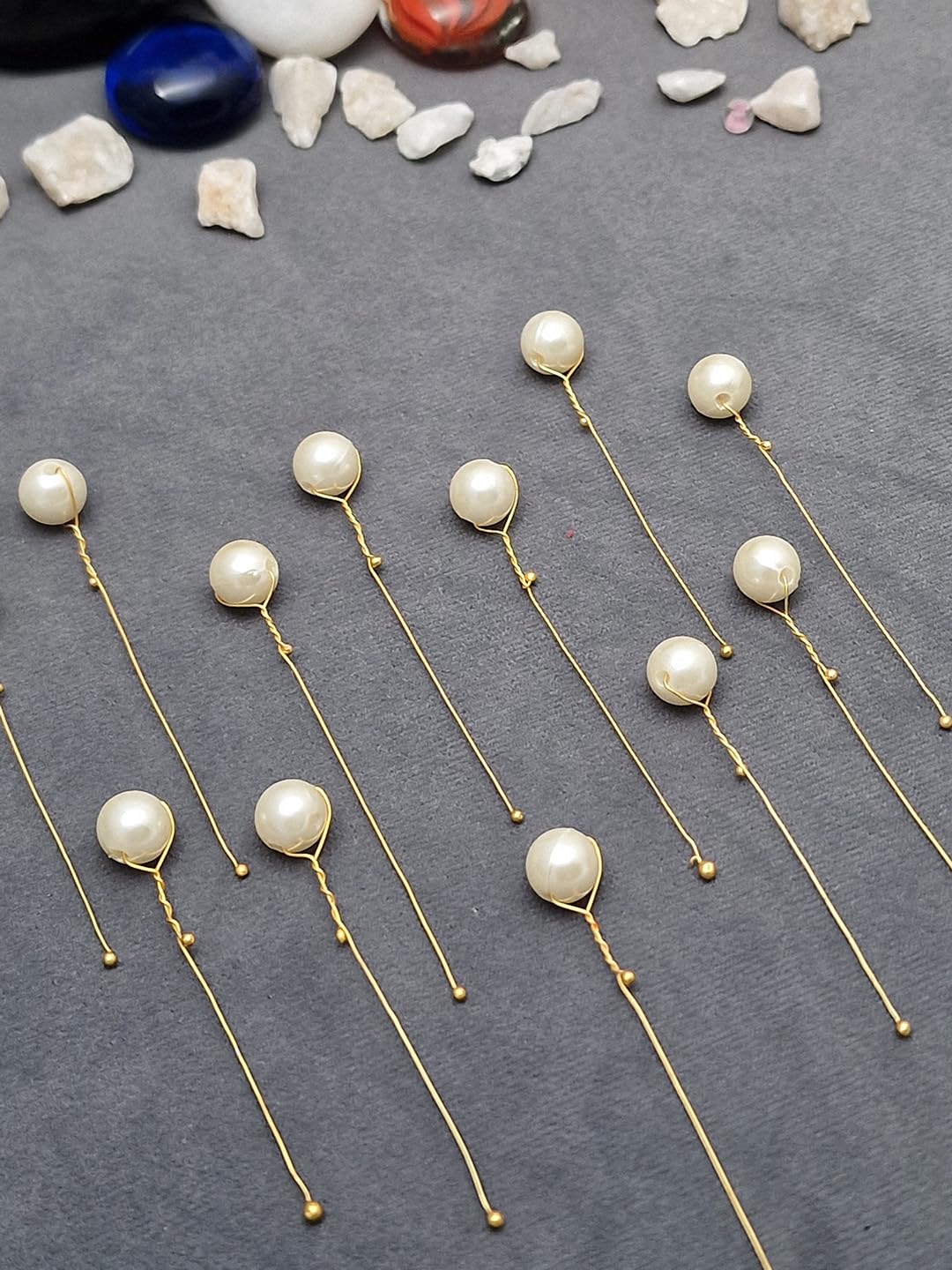HANDCRAFTED DESIGN: Elegant gold wire hair pins delicately wrapped around iridescent pearls, creating a stunning and unique hair accessory