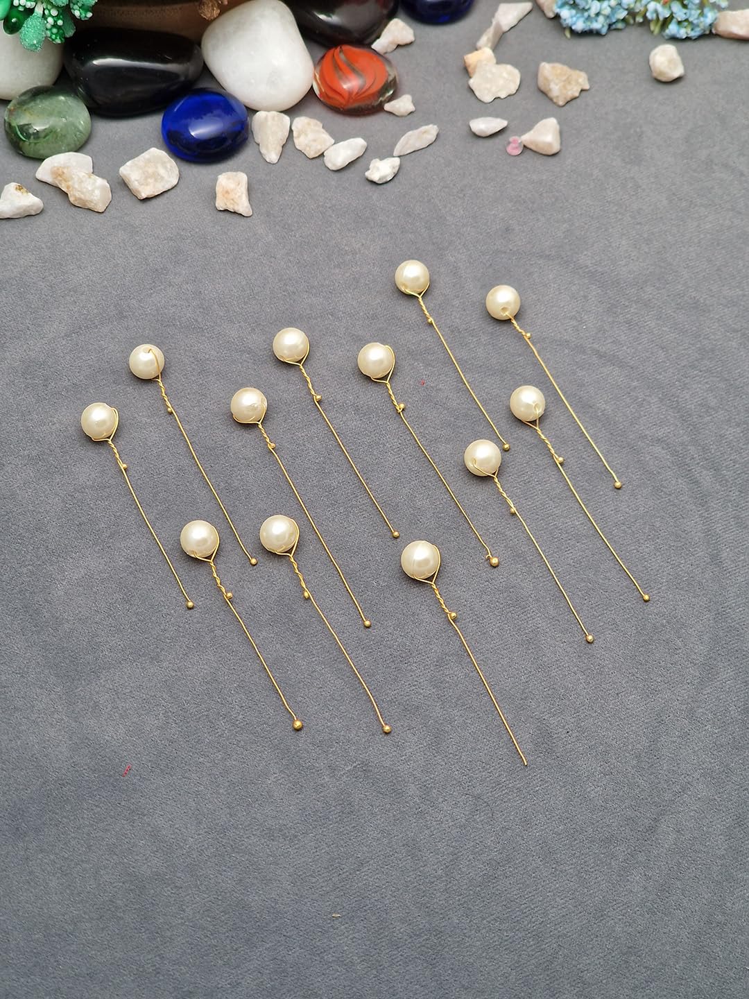 Transform your hairstyle with these exquisite handcrafted pearl hair pins. Each pin features lustrous iridescent pearls delicately wrapped in elegant gold wire, creating a stunning accent for any occasion. The sophisticated design combines the timeless beauty of pearls with contemporary styling, making these pins perfect for weddings, formal events, or adding a touch of glamour to everyday looks. The carefully crafted gold wire securely holds each pearl in place while maintaining a graceful, floating appearance. These versatile hair accessories complement various hairstyles, from intricate updos to simple twists. The iridescent finish catches light beautifully, adding a subtle rainbow sheen that enhances their ethereal appeal. Ideal for brides, bridesmaids, or anyone seeking to add a refined touch to their hair accessories collection. The lightweight design ensures comfortable wear throughout the day, while the durable construction maintains its elegance through multiple uses. Each pin is individually crafted with attention to detail, ensuring a unique and sophisticated addition to your hair styling repertoire.