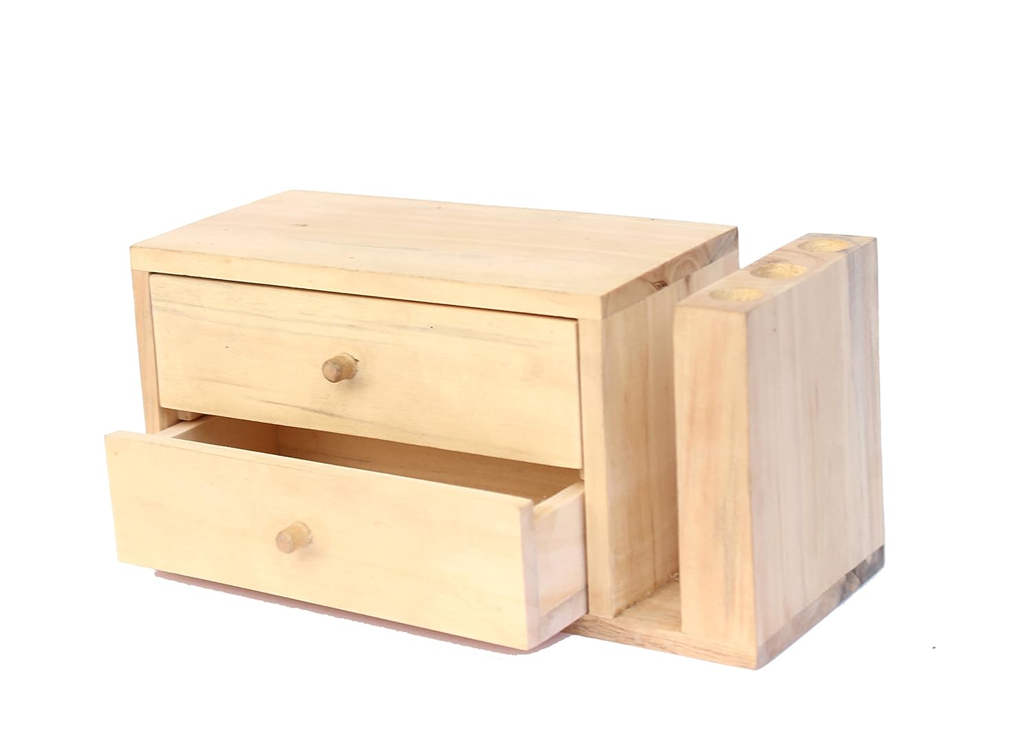 IVEI Wooden Mini Drawer with Pen & Mobile Holder – Table Top Desk Organizer – Stationery Pen/Pencil Holder for Home Schools Office – 7″ Inches