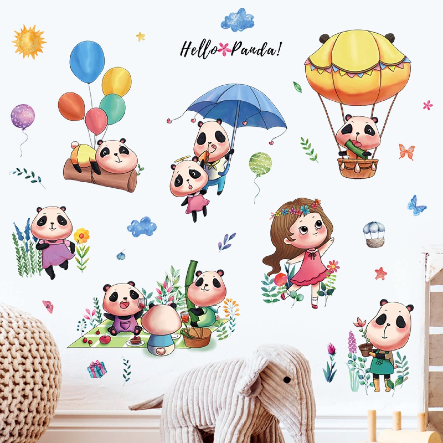 JAAMSO ROYALS Cartoon Panda Balloon Picnic Wall Stickers for Kids, Wall Stickers for Kids Room, Kids Wall Stickers for Kids Room, Baby Room Decoration Items (60 CM*90 CM)