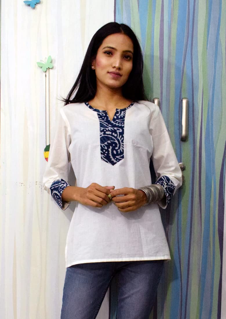 A unique stylish concept made in pure cotton 60’s Soft cotton fabric. Unique Neck design top with in beautiful designs and colors printed using Hand Block techniques. This is Designed as per the trends to keep you in sync with high fashion, it will keep you comfortable day long. A daily wear for your office, home, market visit or a visit to your friend. Comfortable for travelling. JAIPUR HAND BLOCK is a premium Brand catering to Authentic Hand Block print fabrics and apparels made using pure fabrics as mentioned in listings. Our brand merges Indian and western sensibilities with an emphasis on distinctive design and styling. This is an authentic hand block printed product using Sanganeri Block print and Bagru Print fabrics, minute contortion in design is not a defect but result of the technique used, which could be found in all hand printed products. Only natural dye is used in the making of this product. it’s made of pure cotton. So the softness of dress would make you feel very comfortable in all seasons. We at JAIPUR HAND BLOCK brings you the Authentic Hand Block prints of Rajasthan. Printed on pure 100% COTTON fabric. MATCH OUR PRICES AND QUALITY WITH ANY PURE AUTHENTIC BLOCK PRINT BRANDS AND YOU WILL FIND US AT PAR IN QUALITY AND FOR RATES AT LEAST 50% LESS