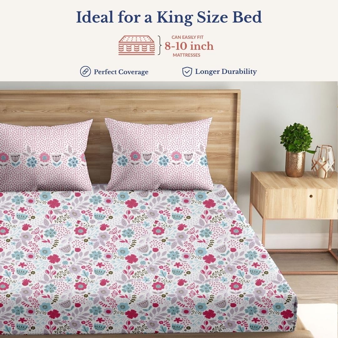 Durable and Long-lasting: Tired of fabrics that lose their charm after a few washes? Our cotton bed sheets for double bed set is a durable addition to your home furnishings. This bed sheet will maintain its softness and color, offering a lasting touch of luxury for your bed sheet king size needs.
