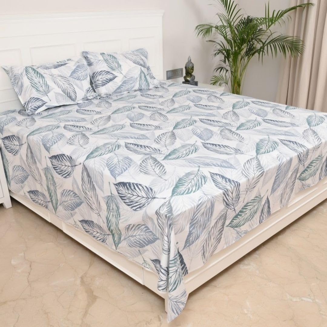 Elegant Modern Leafy Design for Stylish Bedrooms: Leafy Print Cotton King Size Bedsheet: Adds a fresh, contemporary look to your bedroom décor—perfect for modern homes, guest rooms, and everyday luxury bedding.