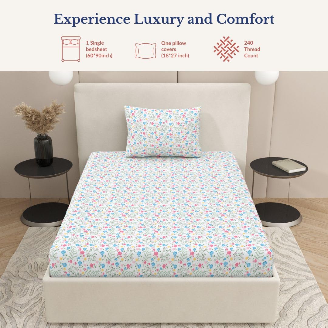 Elegant Modern Floral Design for Everyday Bedrooms: Floral Print Cotton Single Bedsheet: Adds a fresh contemporary look—perfect for bedrooms, guest rooms, kids’ rooms, and hostel use.