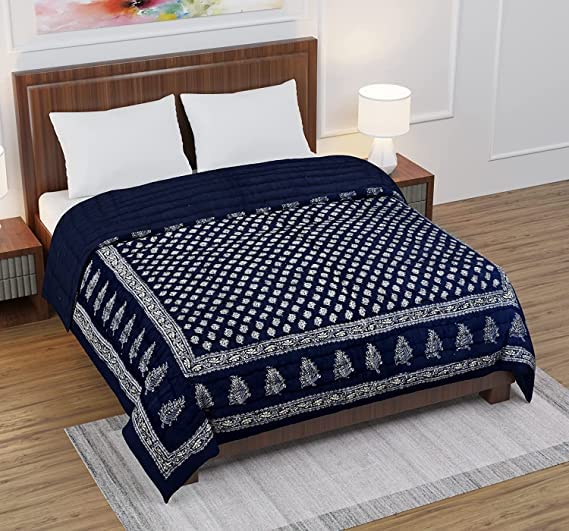 SK STORE Present The world famous jaipuri pure cotton Single bed razai (Quilt) in traditional sanganeri print of rajasthan. These good looking, fluffy, hand-made indian quilts are a specialty of jaipur. This spectacular quilt will enhance the beauty of your home decor as well as provide you warmth on cooler winter nights. The lightweight jaipuri quilt is filled with pure cotton & outer fabric has been used of pure cotton. This quilt is a perfect gift for weddings, housewarmings, engagements and anniversaries.unlike most razai that are filled with fiber, this is a cotton razai filled with cotton. A traditional printed warm razai in floral colours. This will keep you warm in the summer and cool in the winter. Designed to take extreme temperatures and air conditioning as well.