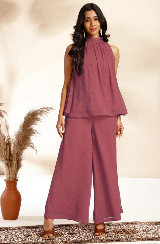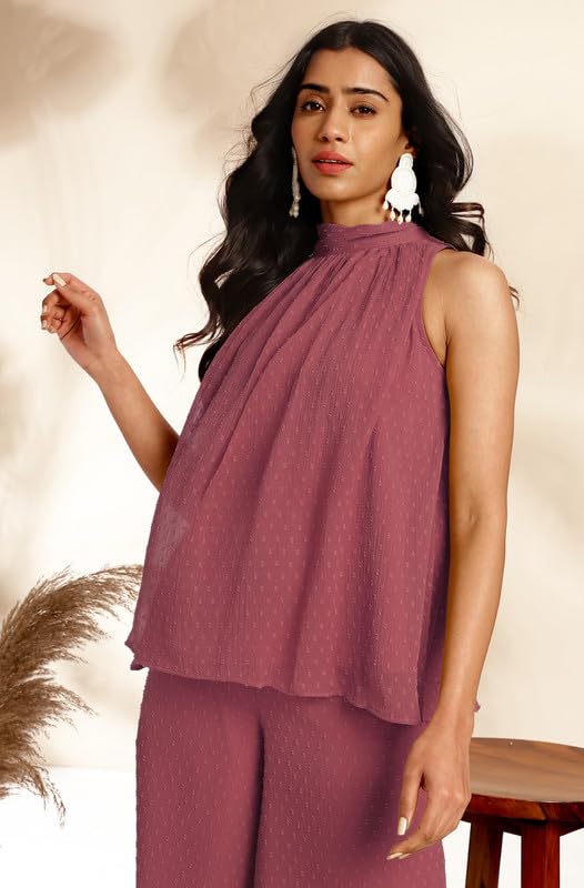 Janasya Women’s Chiffon Woven Design Gathered Co-Ord Set